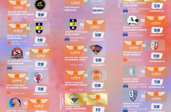🔜 Nuestros equipos afrontan una nueva jornada llena de partidos, con 6 encuentros en el Pla de l’Arc entre sábado y domingo 🏠
